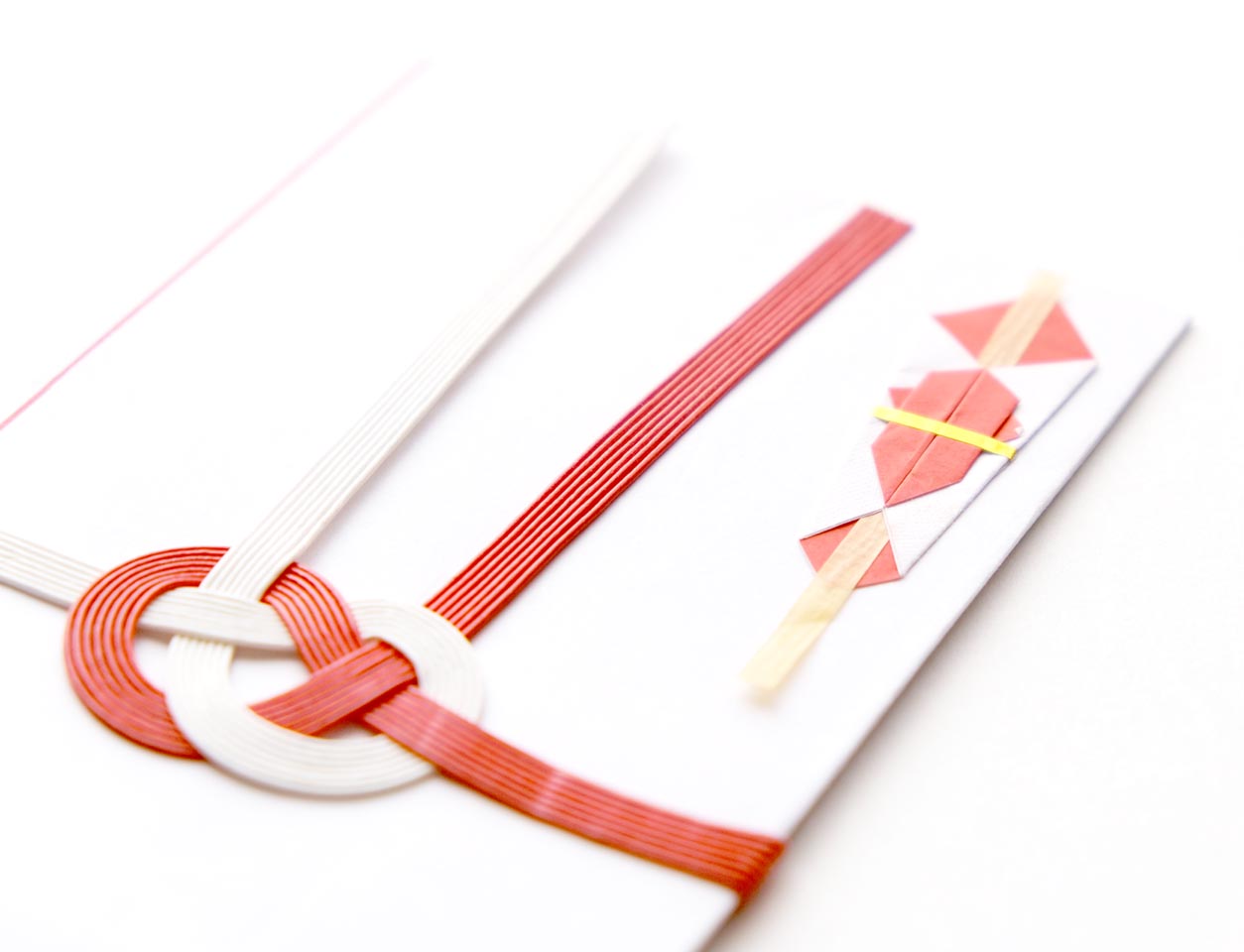 のし袋の外袋には、お祝いの出来事に応じた表書きを上に書き、下に贈り主の氏名を書きます。水引の種類はお祝いごとや弔事の種類によってさまざまな種類がありますので、場面に合わせてお選びください。